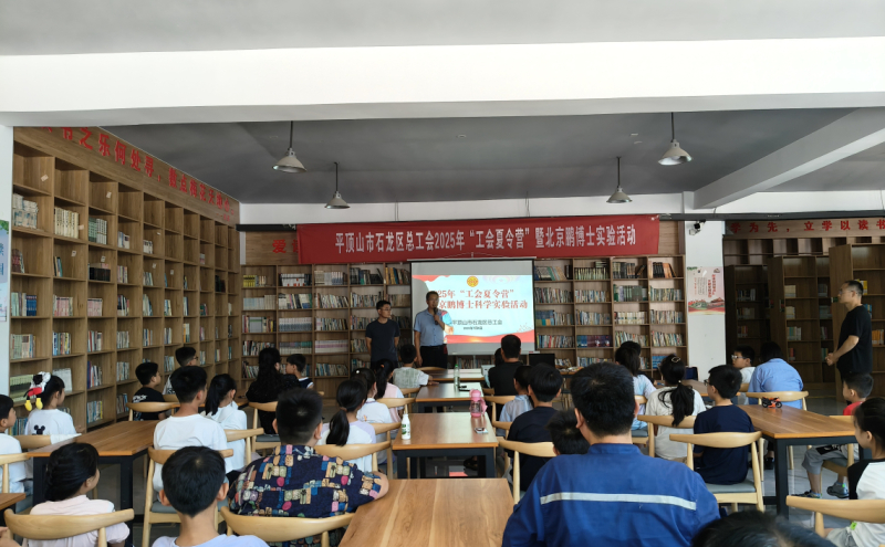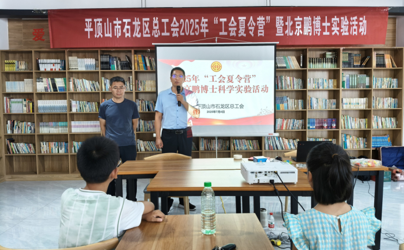 为丰富职工子女暑期生活,激发青少年科学探索兴趣,7月4日,石龙区总工会精心组织开展了2025年“工会夏令营”暨北京鹏博士实验活动。区总工会党组书记、副主席王领昭参加活动。