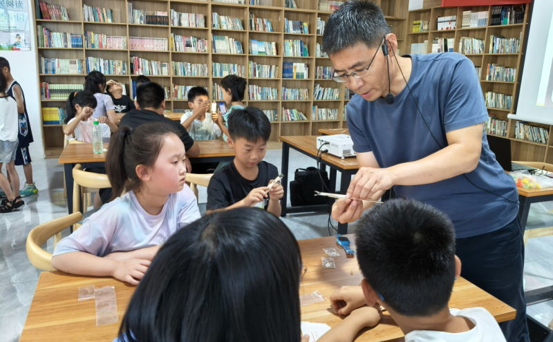 此次活动在区总工会鹰城书苑爱心驿站举行,特别邀请了北京华科动展科技有限公司负责人、清华大学博士常鹏老师现场授课,40余名学生及家长在常鹏博士的指导下,亲身体验了妙趣横生的科学实验,开启了一场奇妙的科学探索之旅。
