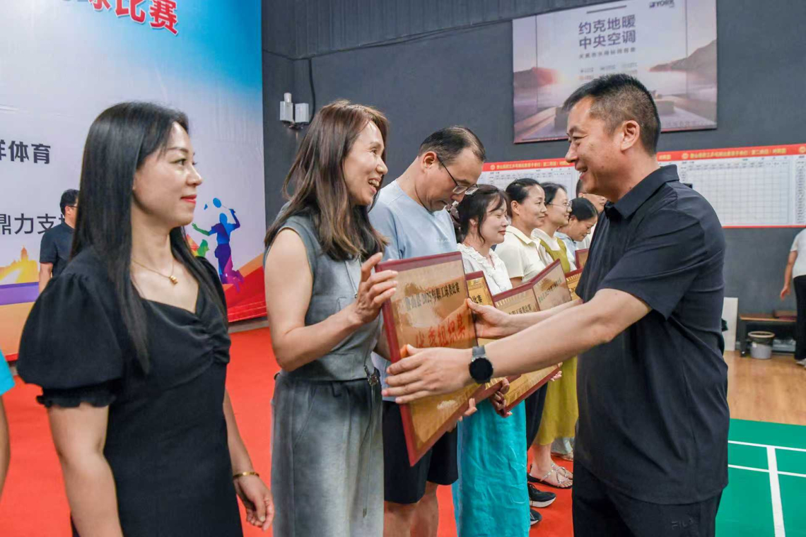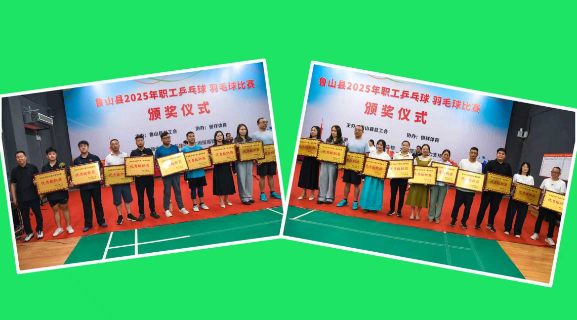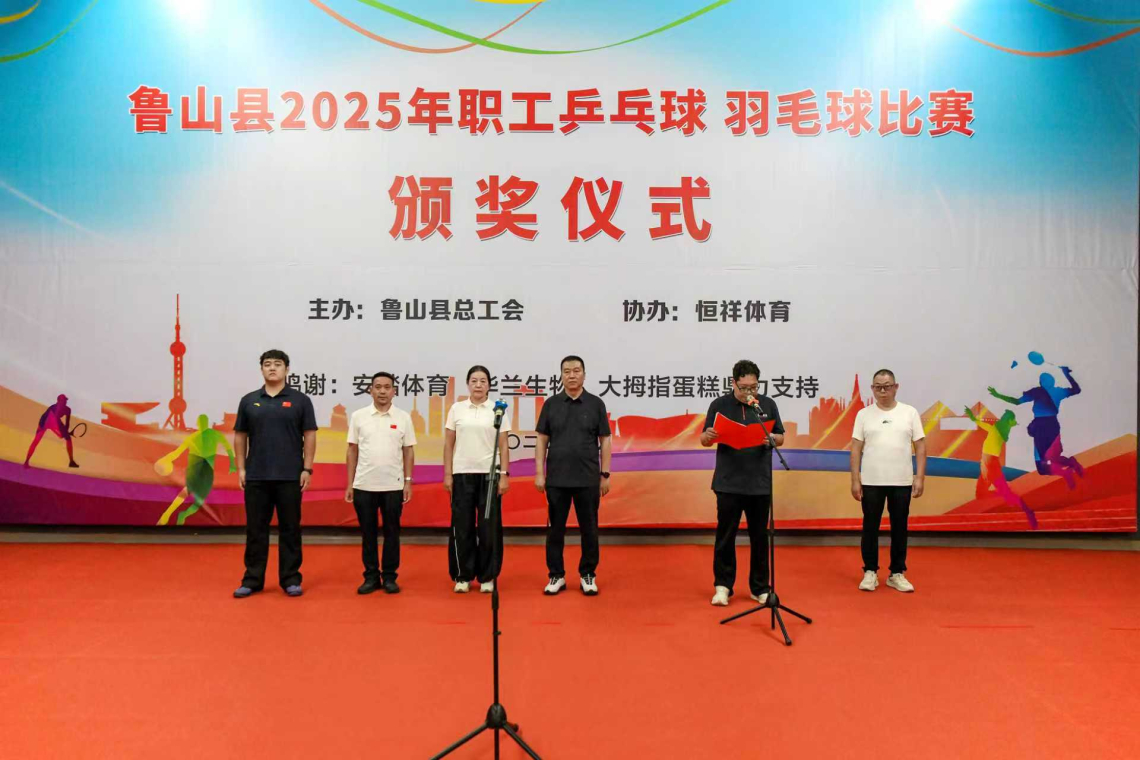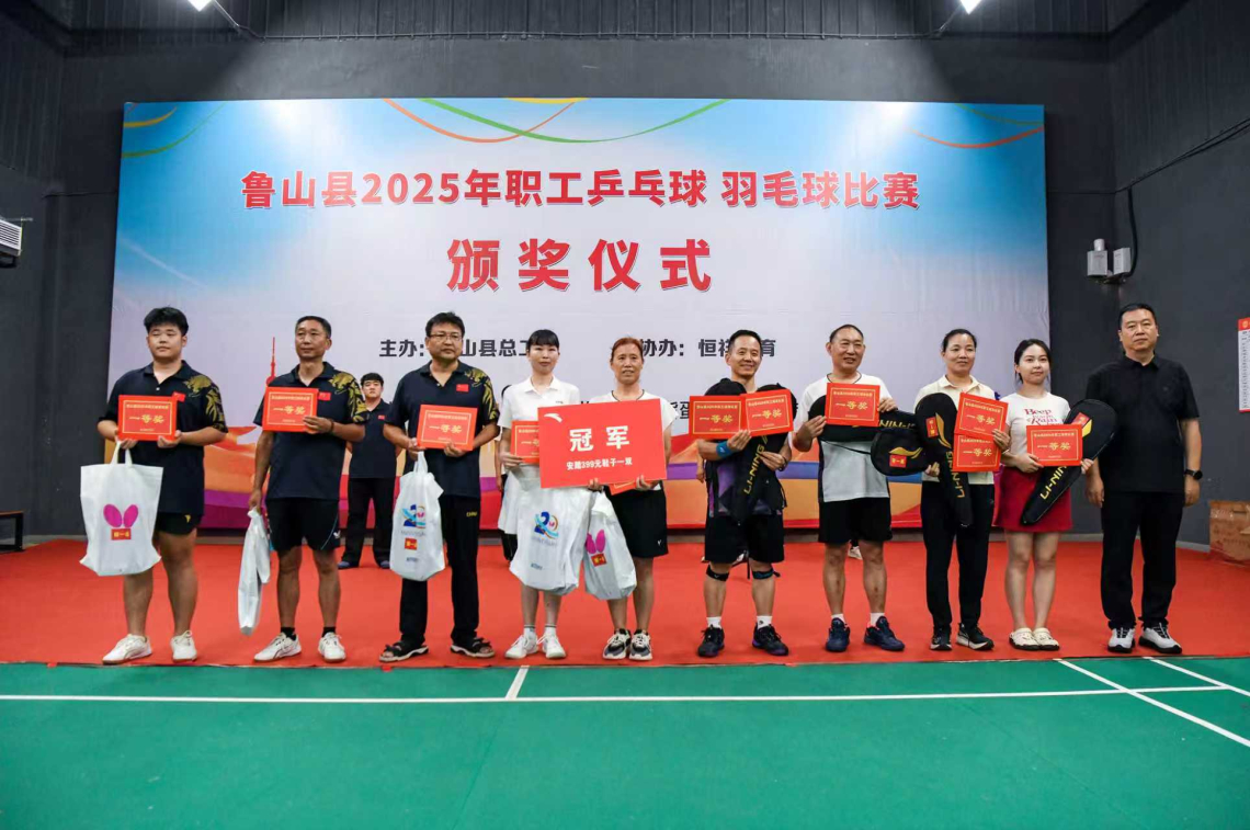 为庆祝中华全国总工会和河南省总工会成立100周年,鲁山县总工会举办的2025年职工乒乓球、羽毛球比赛,经过激烈角逐,于8月14日决出各项名次,圆满落下帷幕。县总工会党组书记、副主席田海泉出席颁奖仪式并为获奖选手颁奖。
