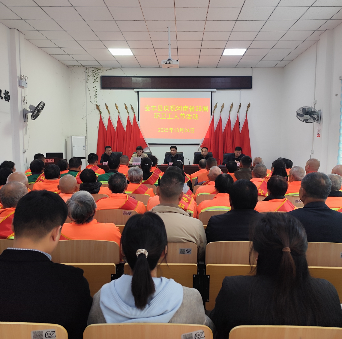 在河南省第二十八届“环卫工人节”来临之际,10月24日,在宝丰县城市管理局开展“环卫工人节”慰问活动,县委常委、政法委书记、副县长陈国辉,县人大副主任、县总工会主席庞旭辉和全县优秀环卫园林工人参加活动。