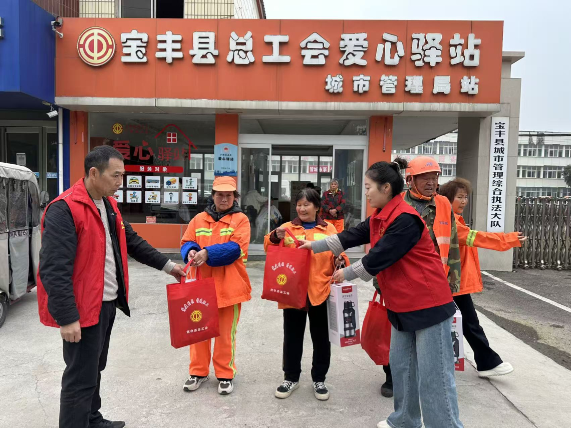 庞旭辉代表县总工会为全县优秀环卫园林工人送去慰问品,并向奋战在环卫战线的工友们致以亲切的问候和最真诚的感谢!希望大家继续发扬“宁脏我一人,洁净千万家”的敬业精神,以更饱满的热情、更扎实的作风,投入到美化、净化城市环境的工作中。此次慰问活动,共为全县175名优秀环卫园林工人送去了保温杯、棉手套、毛巾、香皂等慰问品,还考虑到环卫工人的实际需求,县总工会还特别增设免费理发服务,让大家在节日前夕感受到工会组织实实在在的关爱与温暖。(岳璐萍)