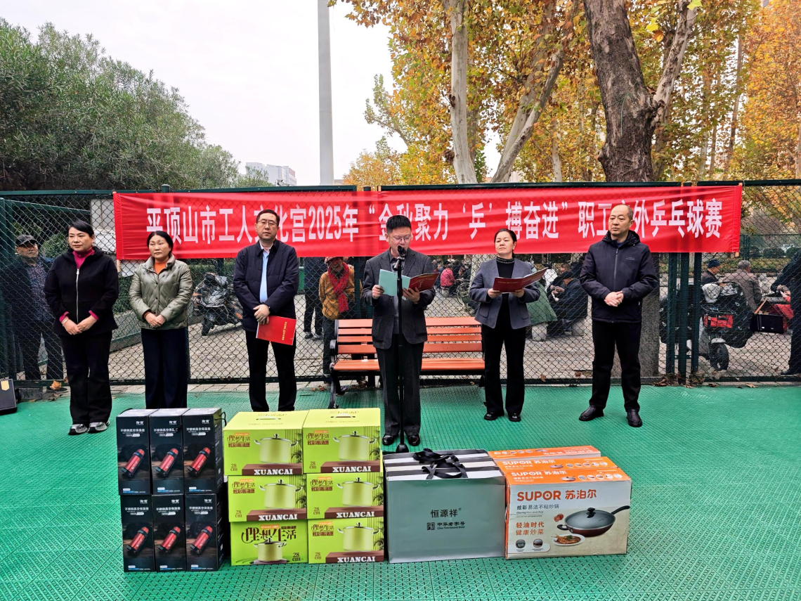 11月10日上午,平顶山市工人文化宫2025年“金秋聚力 ‘乒’搏奋进”职工户外乒乓球赛圆满落下帷幕,市总工会三级调研员杨国利出席闭幕式并致辞,市工人文化宫全体班子成员参加闭幕式。