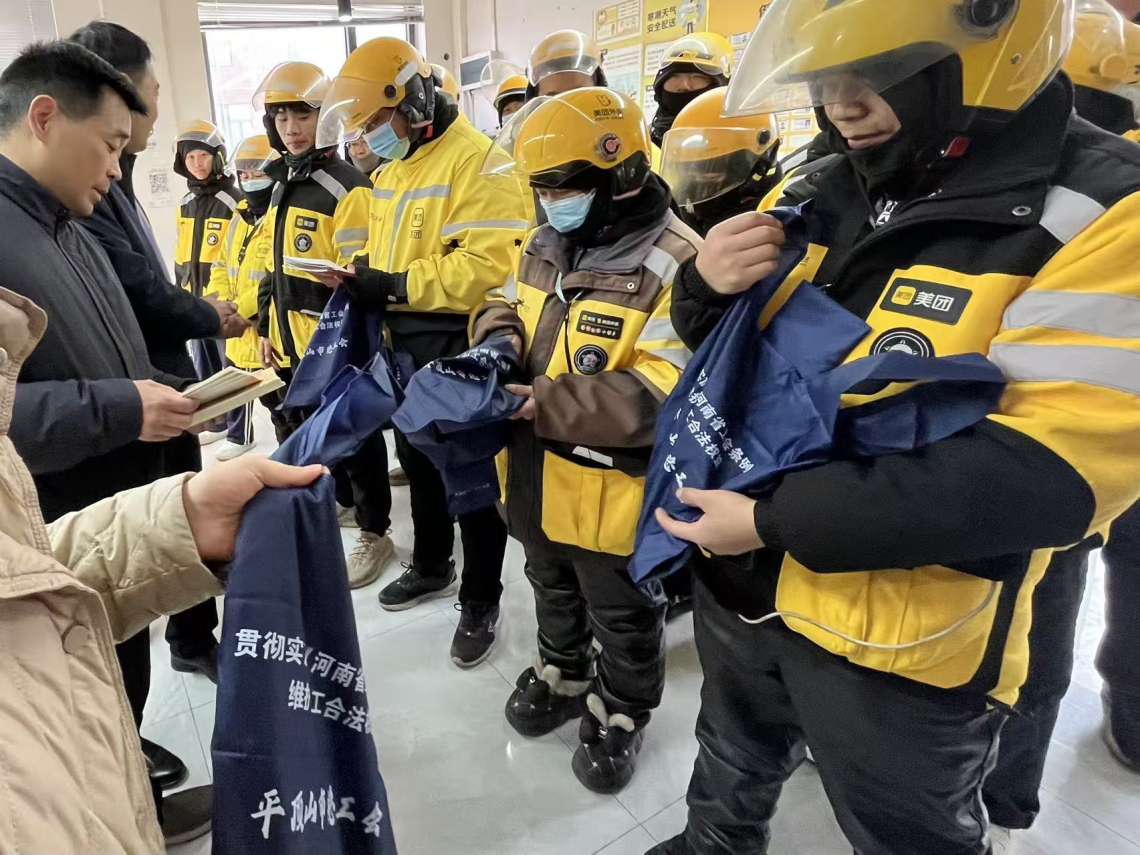 一场简朴而郑重的“法治礼包”赠送仪式在现场举行。市总工会与市司法局的领导共同将精心准备的《中华人民共和国宪法》《劳动法》《劳动合同法》及《工会法》等法律法规书籍和宣传资料赠送给美团外卖骑手。这份“法治礼包”内容实用、针对性强,旨在为平台企业和骑手们提供触手可及的法律工具,引导大家办事依法、遇事找法、解决问题用法、化解矛盾靠法。