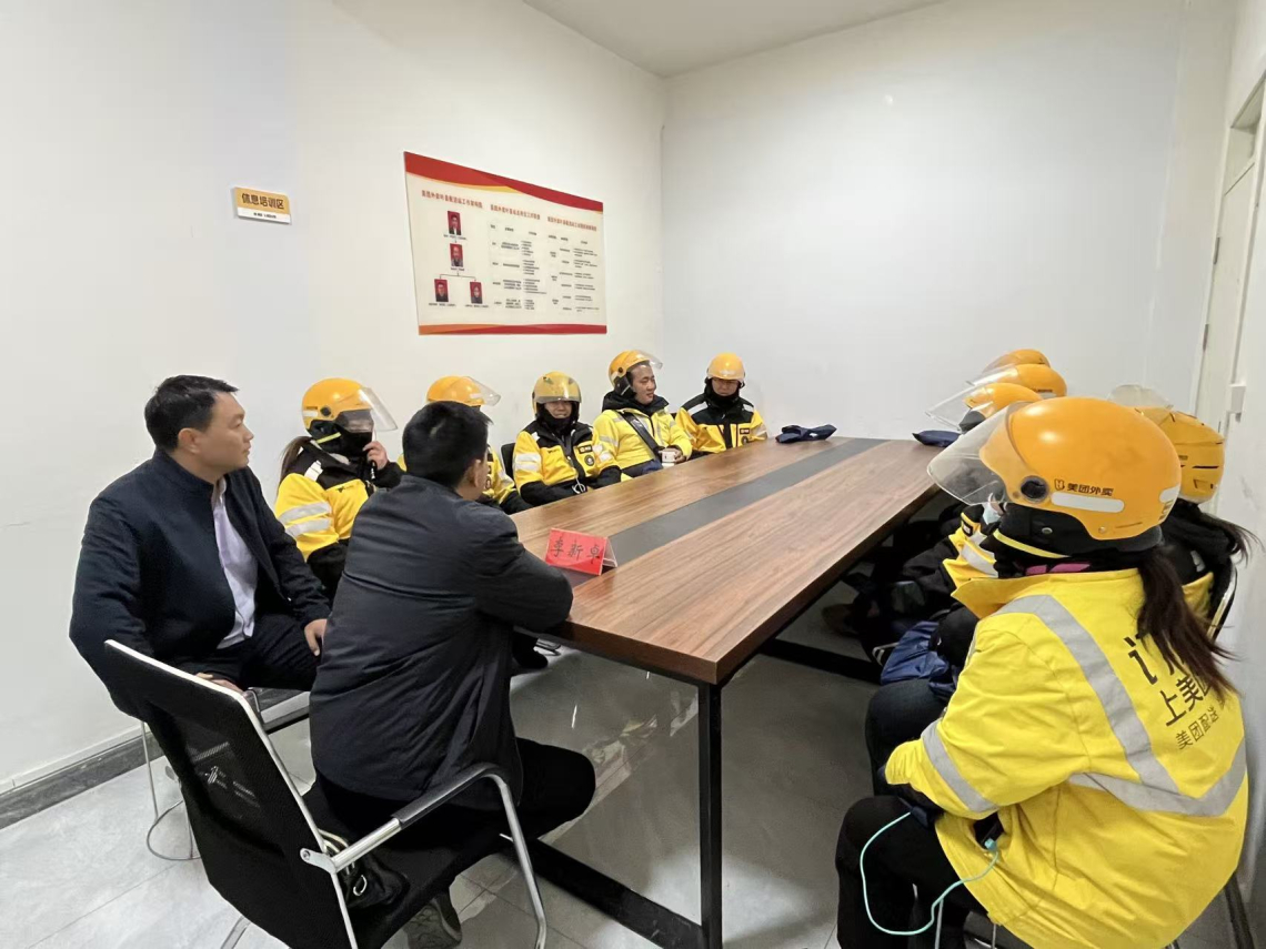 调研组一行首先实地查看了站点的运营环境、骑手驿站及安全设施配备情况,并与站点负责人深入交流,详细了解骑手们的日常工作流程、用工管理模式、收入构成以及面临的现实困难。