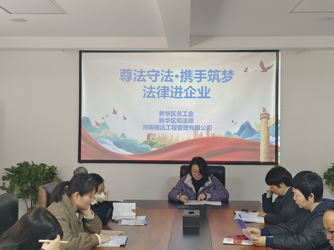 12月9日上午,新华区总工会、新华区司法局联合在河南驰远工程管理有限公司二楼会议室开展送法进企业活动。