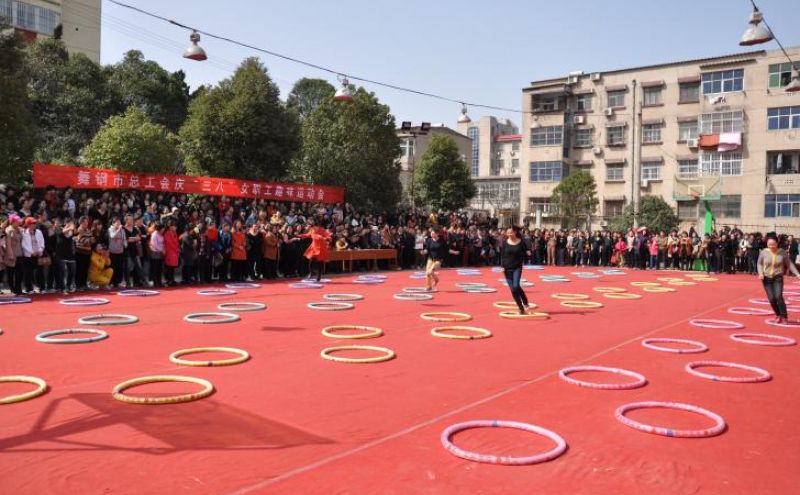 春意盎然,阳光明媚,为庆祝 “三八”国际劳动妇女节的到来,丰富广大女职工的精神文化生活,进一步增强广大女职工参加体育锻炼、享受快乐人生的理念,倡导全市女职工以昂扬向上的精神状态,奋力拼搏的无畏勇气,团结协作的团队精神,为舞钢经济平稳快速发展建功立业。3月7日下午,舞钢市总工会庆“三八”女职工趣味运动会隆重开幕,在市工人文化宫院内的篮球场上,人头攒动、热闹非凡,来自全市85个单位的近900名女职工齐聚一堂,共同参加这一盛大赛事。
