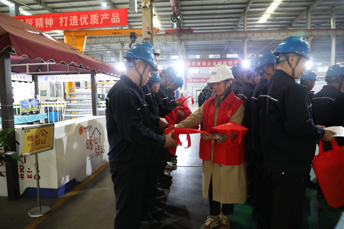 “谢谢!谢谢你们这份特别的礼物”。每到一处,联合小组法律宣传志愿者们,都会为每位职工送上细心整合的《劳动法》《工会法》《八五普法手册》《反诈宣传手册》等普法“大礼包”,以及其中精心准备的指甲剪、梳子、花镜等贴心小礼品。在铁福来车间“暖心驿站”区域,工间小憩中的职工朋友们,用掌声与满面笑容的合影表达了那一刻他们最诚挚的心情。