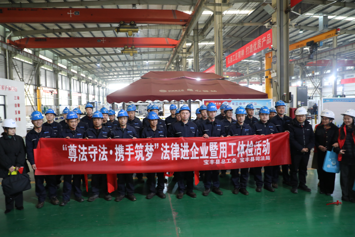 为大力加强宪法宣传教育,弘扬宪法精神,依法履行工会劳动法律监督职责,切实维护职工合法权益,构建和谐劳动关系。12月4日,宝丰县总工会、宝丰县司法局、宝丰县工商联联合开展“尊法守法·携手筑梦”法律进企业暨用工体检活动,为企业健康发展提供坚强法律保障。