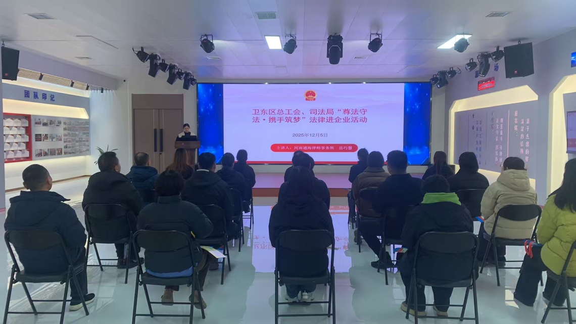 为深入学习宣传习近平法治思想,扎实推进宪法宣传教育走深走实,进一步增强企业职工的宪法意识和法治观念,12月5日上午,卫东区总工会、区司法局组织律师、普法志愿者,深入辖区河南海泰天成电子有限公司开展“宪法宣传进企业”主题活动,为企业高质量发展注入法治动能。