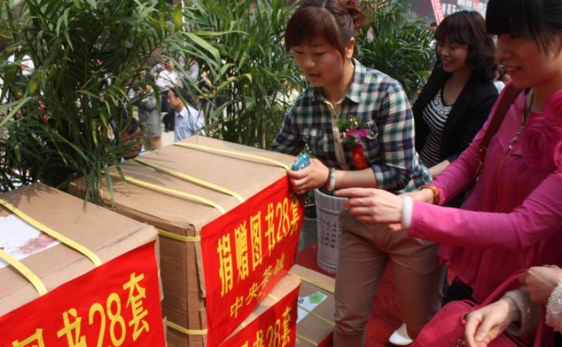 4月28日上午,中央茶城在开业之际,开展向新华区各村、社区“职工书屋”捐书活动。