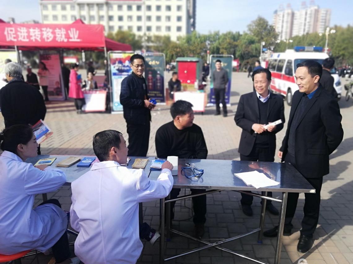 招聘会正式启动后,各位领导到各企业展台进行问询,对招工信息,招工情况进一步了解。招聘会开始后还有丰富的娱乐节目,戏曲、歌曲接连不断,人们边欣赏节目边寻找工作机会,有需要的群众还在义诊台和免费理发区接受服务,招聘会带来的温暖直抵人心。
