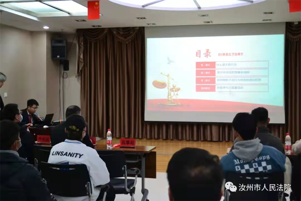 2021年11月30日上午,汝州市法院参与汝州市团市委开展的青少年心理健康、普法宣传活动。汝州市法院干警高攀超以“遵纪守法从杜绝不良行为开始”为主题,为汝州市汝行集团青年职工及街舞青年等讲授公开课。