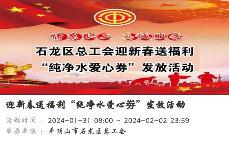 石龙区总工会开展迎新春送福利 “纯净水爱心券”发放活动