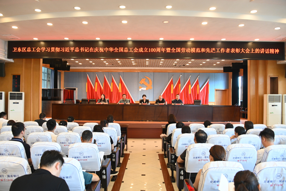 2025年6月20日上午,卫东区总工会召开专题会议,深入学习贯彻习近平总书记在庆祝中华全国总工会成立100周年暨全国劳动模范和先进工作者表彰大会上的重要讲话精神,以及市总工会十一届三次常委(扩大)会议精神。区二级调研员,总工会党组书记、主席李文华出席,并讲话强调,学习贯彻习近平总书记重要讲话精神是当前和今后一个时期工会工作的重要政治任务。全体工会干部要提高政治站位,增强责任感和使命感,以更加饱满的热情、更加务实的作风,扎实做好各项工作,努力开创工会工作新局面,为推动卫东高质量发展贡献工会力量。