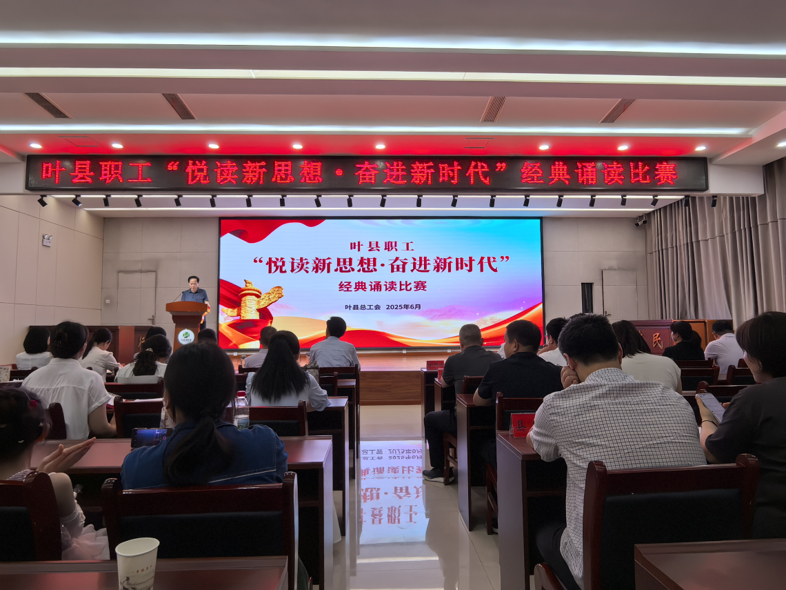 6月26日,在“七一”建党节前夕,2025年叶县职工“悦读新思想·奋进新时代”经典诵读比赛在县中医院多功能报告厅举行。县人大常委会副主任、县总工会主席徐国领出席活动并讲话,33名参赛选手和全县基层工会主席参加会议。