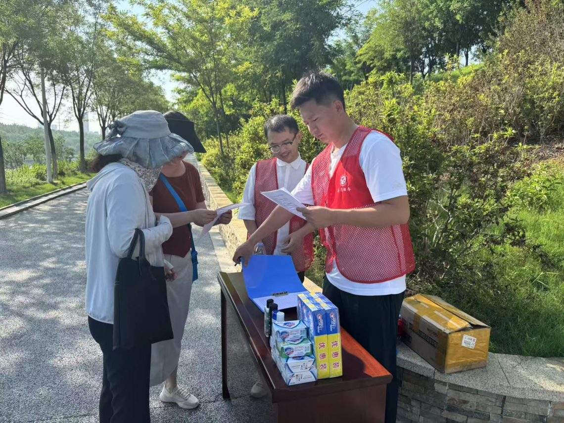 活动现场,队伍浩浩荡荡沿着公园生态步道行进。沿途设置的“节能知识问答”、碳足迹消消乐、投壶成为独特风景,参与者在健步过程中驻足学习,了解日常生活中的节能减排小妙招。