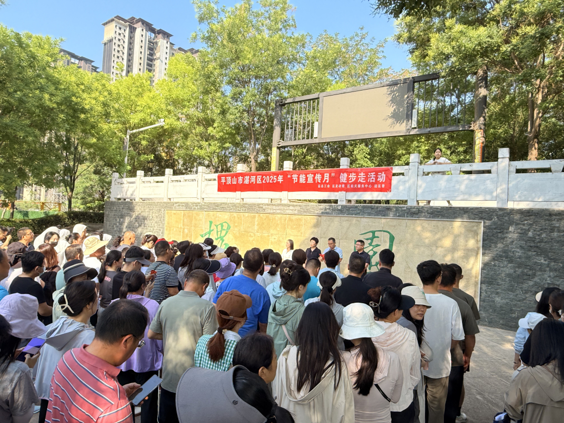 6 月27日,湛河区2025“节能宣传月”健步走活动在湛河区槐园公园举行,来自全区66家单位的近300名职工以脚步践行环保理念,用实际行动为建设低碳城市注入活力。本次活动由湛河区总工会、区发改委、区机关事务管理局、团区委联合举办,旨在通过健康运动与环保理念的深度融合,倡导公众践行绿色低碳生活方式,助力实现 “双碳” 目标。