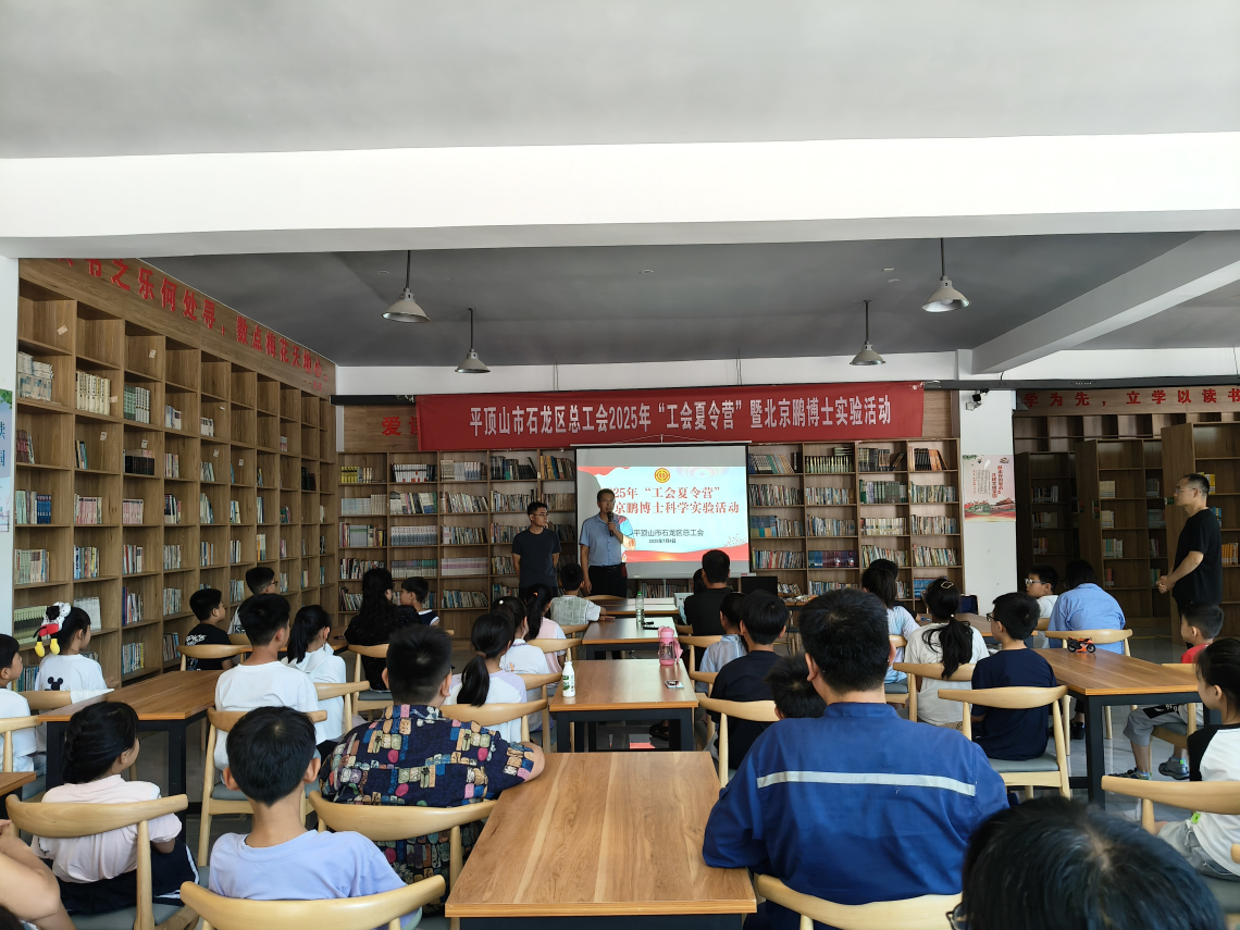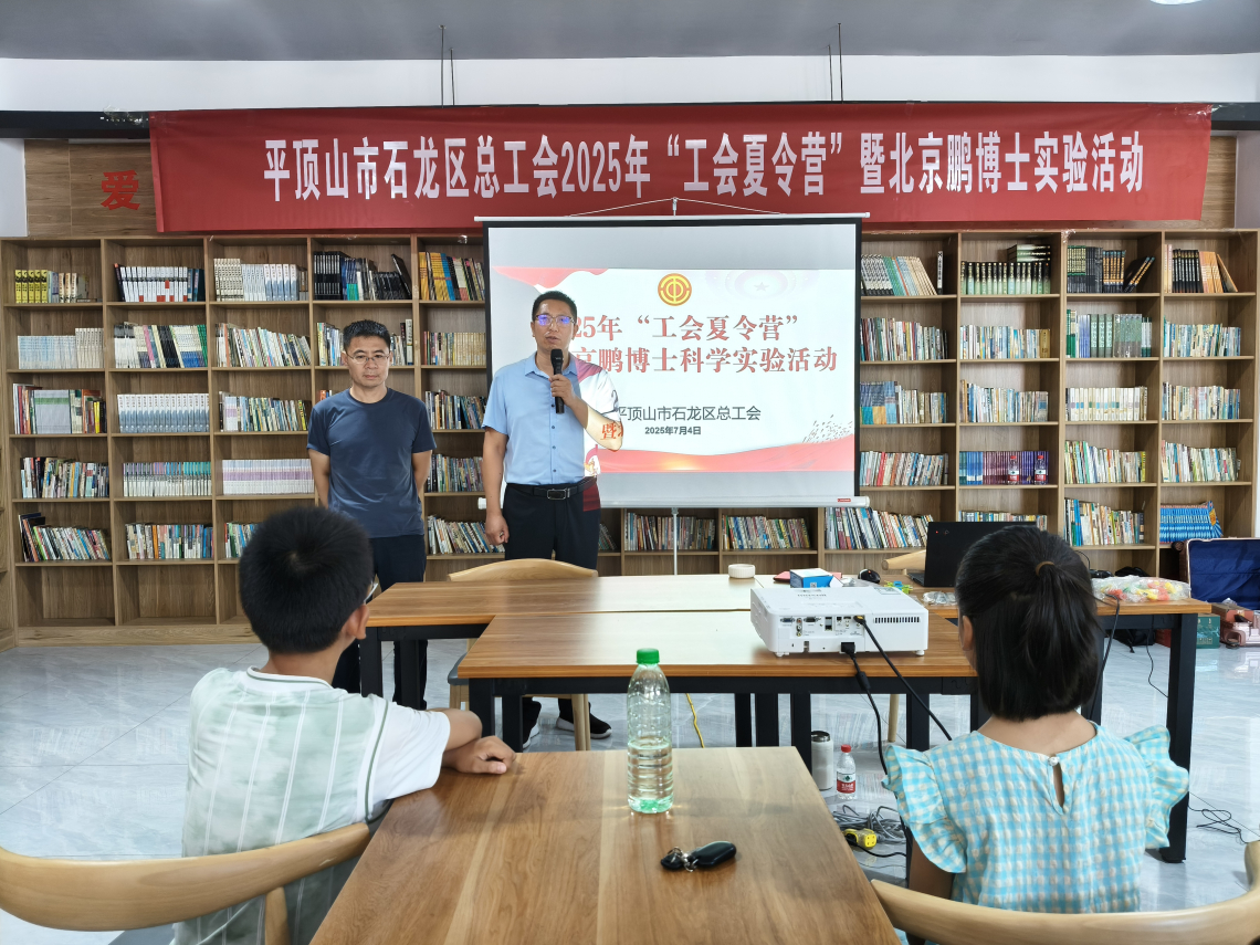为丰富职工子女暑期生活,激发青少年科学探索兴趣,7月4日,石龙区总工会精心组织开展了2025年“工会夏令营”暨北京鹏博士实验活动。区总工会党组书记、副主席王领昭参加活动。
