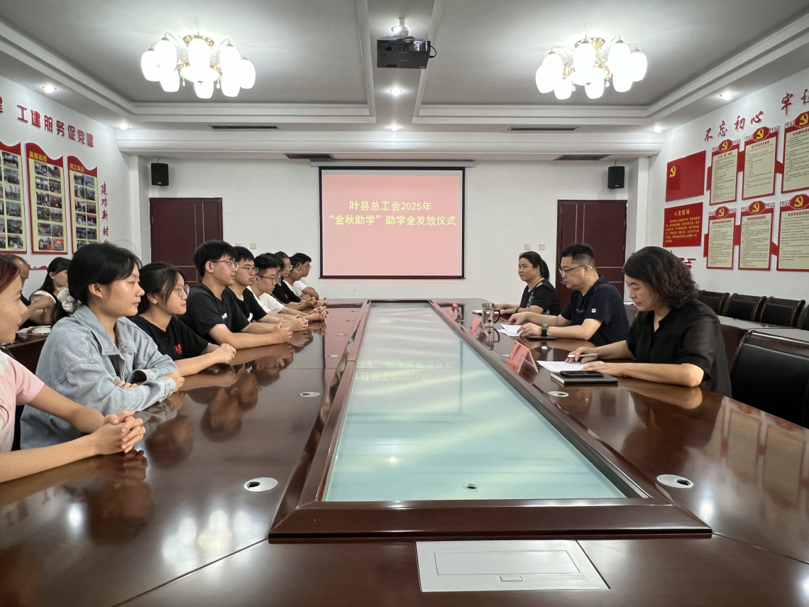 8月27日,叶县总工会2025年“金秋助学”助学金发放仪式在县总工会会议室举行。县总工会党组书记、常务副主席刘岳,县总工会班子成员以及受助学生、家长代表和基层工会主席参加仪式。