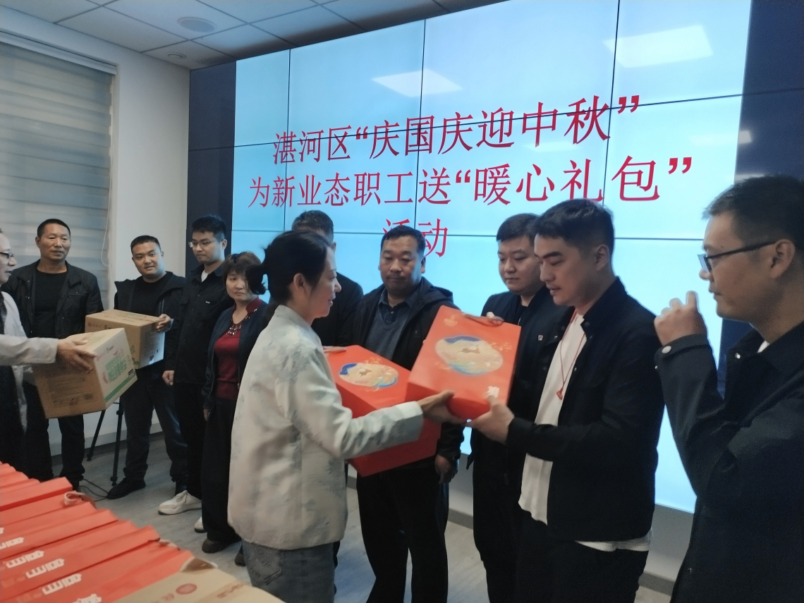 2025年9月29日,在国庆、中秋双节到来之际,为让新业态劳动者感受到工会娘家人的关怀,感受到党和政府的温暖,湛河区新业态工会联合会开展 “庆国庆 迎中秋” 送 “暖心礼包””慰问活动,为坚守岗位的新业态劳动者送去节日祝福。