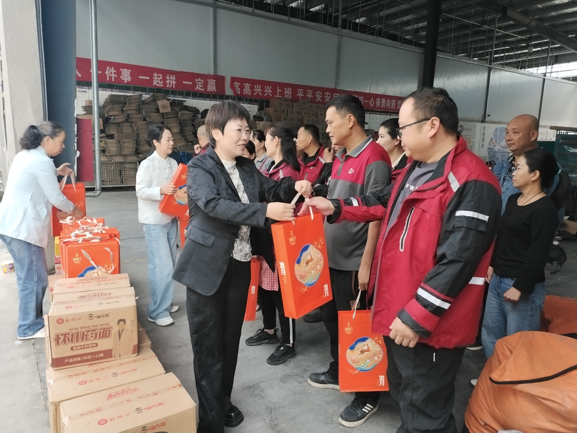 活动中,湛河区总工会党组书记、副主席王俊娜,区新业态工会主席陶艾荣带队,先后走访美团外卖站点、顺丰及极兔速递网点、多邦物流仓储点、博圆供应链仓库及运输行业联合会等12家新业态企业,为外卖小哥、快递员、货车司机等群体送上慰问物资。此次慰问共准备方便面、月饼等物资 130 余份,每份礼包都承载着工会对新业态劳动者的关心,感谢他们在节日期间坚守岗位,保障城市正常运转与民生服务。