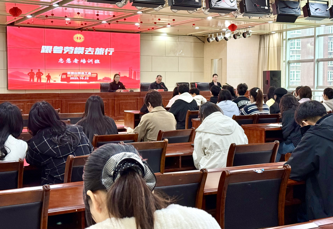 2025年10月23日,平顶山市总工会举办“跟着劳模去旅行”周末游志愿者培训开班仪式,通过社会公开招募的志愿者及市总机关工作人员200余名参加了培训,共同为即将开展的系列活动做好准备。市总工会党组成员、副主席苏新娜出席开班仪式并作动员讲话。