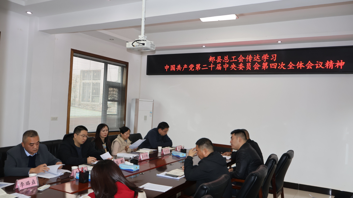 10月27日,在郏县总工会二楼会议室召开专题学习会议,传达学习党的二十届四中全会精神。县总工会党组书记、副主席陈鹏主持会议,县总工会全体干部职工参加会议。