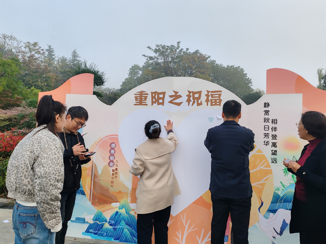 王俊娜在致辞中表示,此次活动既是对“敬老爱老、踏秋祈福”重阳传统的传承,也是总工会关爱职工身心健康的具体举措,希望职工们在活动中放松身心、增进情谊。活动设置四大主题打卡点,南门“祝福”区职工写下便利贴寄语长辈;东门“知秋”区大家亲手制作树叶书签留存秋韵;东门“牵挂”区传递对亲友的思念;西门“传承”区的古诗接龙互动,让职工在诗词中感受文化魅力。