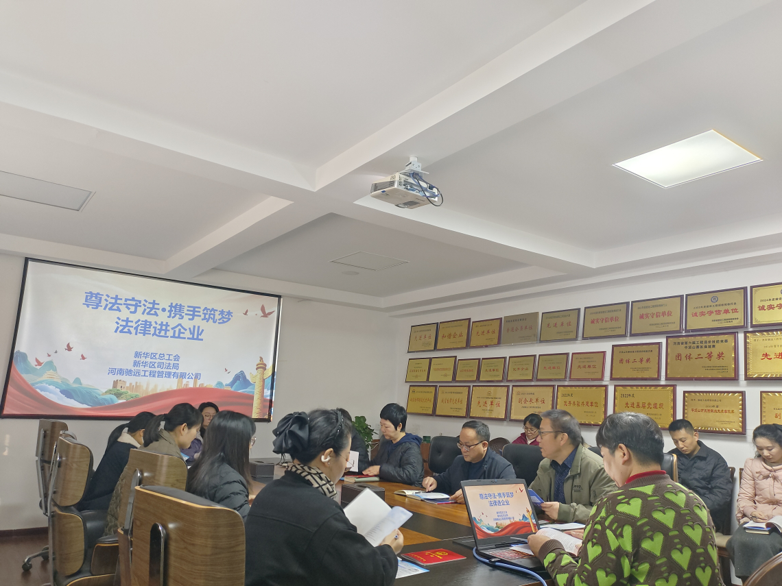 12月9日上午,新华区总工会、新华区司法局联合在河南驰远工程管理有限公司二楼会议室开展送法进企业活动。