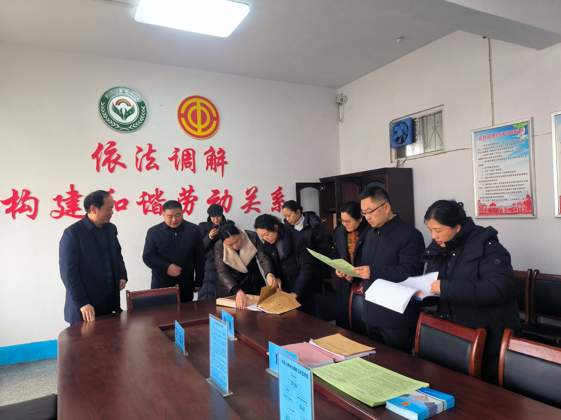 在县人力资源和社会保障局“叶县总工会驻劳动人事争议仲裁院法律服务工作站”,郭主任一行仔细翻阅了劳动争议调解案卷、普法活动台账等资料,详细了解“工会+人社”在劳动争议联合调解、法律法规联合宣传、职工服务联合办理等方面的创新做法与协同成效,对工作站的作用发挥表示肯定。在县综治中心,郭主任详细了解劳动争议调解与综合治理衔接机制,并就进一步提升多元共治效能进行了现场探讨交流。