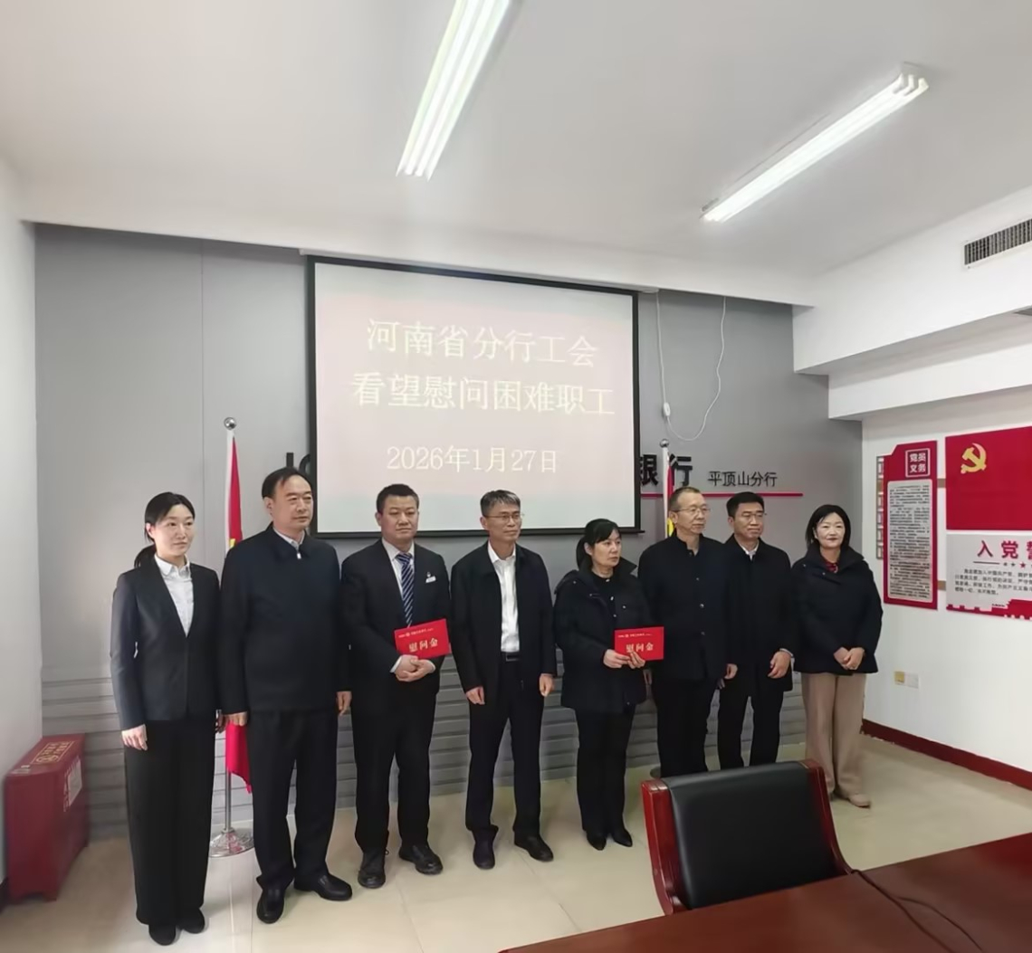 近日,中国工商银行河南省分行党委委员、副行长、工会主席潘勇一行到平顶山建东支行,对网点一线员工开展春节送温暖慰问活动。并参观中国工商银行平顶山分行行职工之家、慰问困难员工、为营业部朱子铖劳模创新工作室进行揭牌仪式。