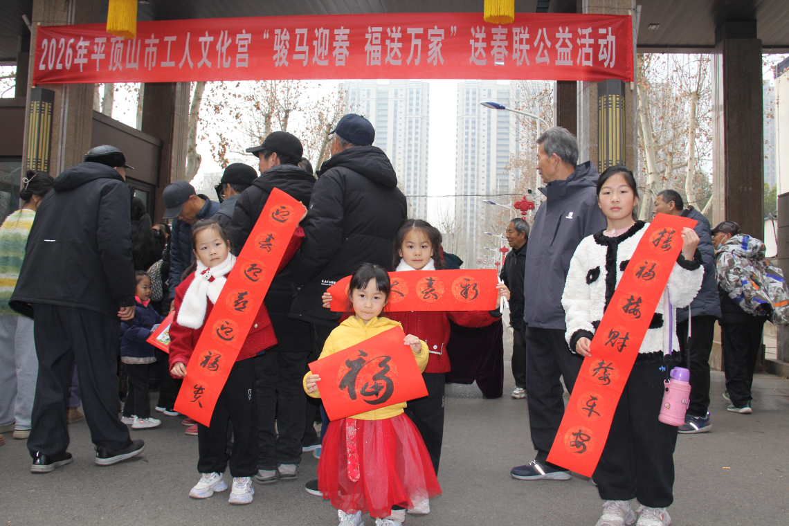 在春节前开展送春联公益活动,已成为平顶山市工人文化宫多年来持续不断、深入人心的文化服务品牌,不仅承载着节日的仪式感,更成为文化宫连接广大职工群众的牢固情感纽带,有效提升了职工群众的节日文化获得感与幸福感。为持续丰富春节期间职工群众的精神文化生活,市工人文化宫还将在大年初一上午推出谜语竞猜活动,期待广大市民朋友继续踊跃参与,共度一个欢乐、文明、书香充盈的新春佳节。