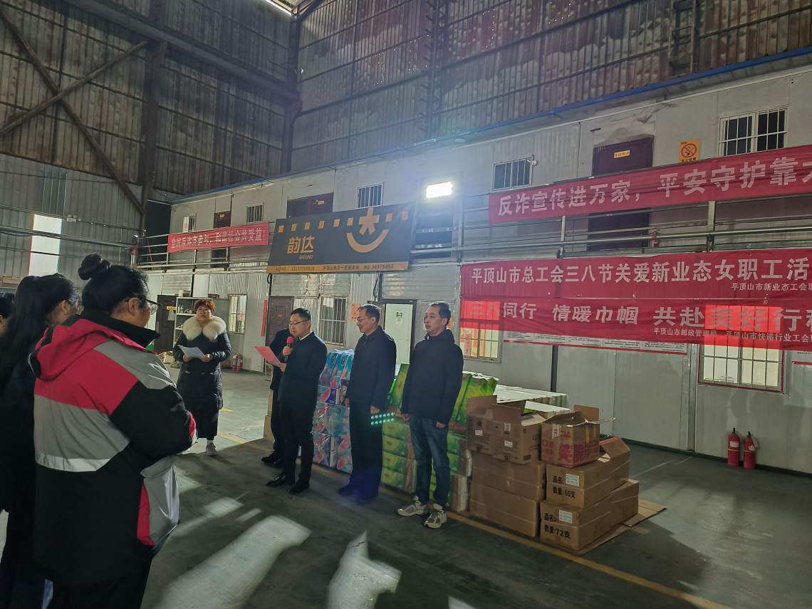 3月5日上午,在第116个“三八”国际劳动妇女节即将到来之际,市总工会党组成员、经审委主任郭强赴快递行业开展新业态工会工作调研暨“三八”节关爱新业态行业女职工活动。