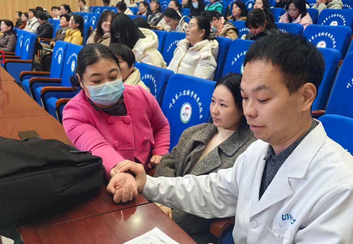 讲座过程中,现场女职工认真聆听,专家针对大家的问诊逐一耐心解答,互动氛围热烈。曾攀峰医师还为有需要的女职工现场把脉、指导找准安神舒压穴位。此次讲座专业详实、贴合实际,兼具理论性与实操性,让大家在轻松的氛围中收获了实用的身心健康养护知识。大家纷纷表示,此次讲座内容精准契合自身需求,既学会了失眠调理的科学方法,也缓解了育儿和工作中的焦虑情绪,受益匪浅。