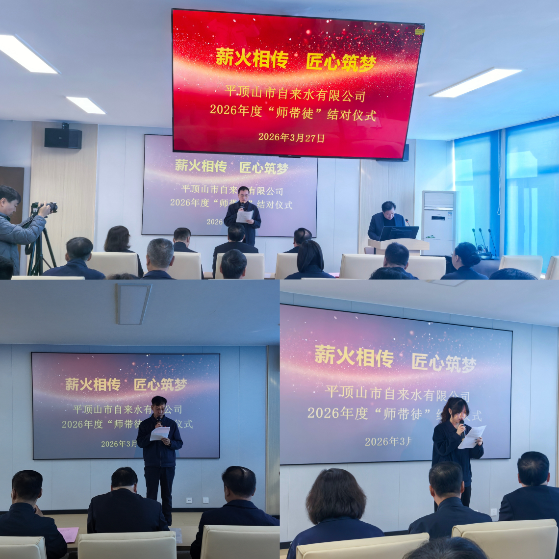 为深入贯彻落实产业工人队伍建设改革要求,传承匠心精神,搭建人才培养阶梯,助力青年员工快速成长成才,3月27日上午,市自来水有限公司在焦庄水厂培训中心举行2026年度“薪火相传·匠心筑梦”师带徒结对仪式。市自来水有限公司公司党委书记、董事长毕志伟出席仪式并致辞,向本次结对的34对师徒表示热烈祝贺,并致以美好祝愿。