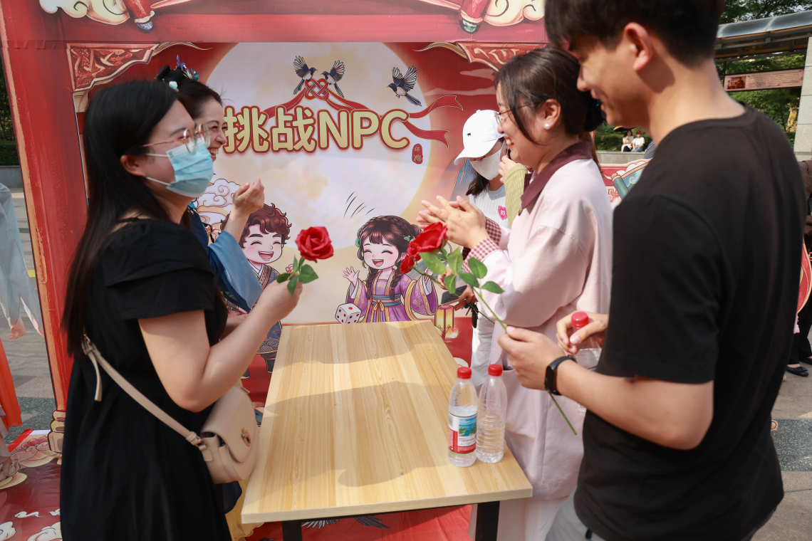 活动在古风舞蹈中拉开帷幕,现场设置了才艺展示、游园闯关、心形气膜互动等环节。青年职工们在轻松愉悦的氛围中交流互动,通过游戏赢取银票兑换礼品,在欢声笑语中拉近距离、增进了解。最终配对成功的职工还获得了主办方准备的小礼品,并在舞台合影留念,定格美好瞬间。
