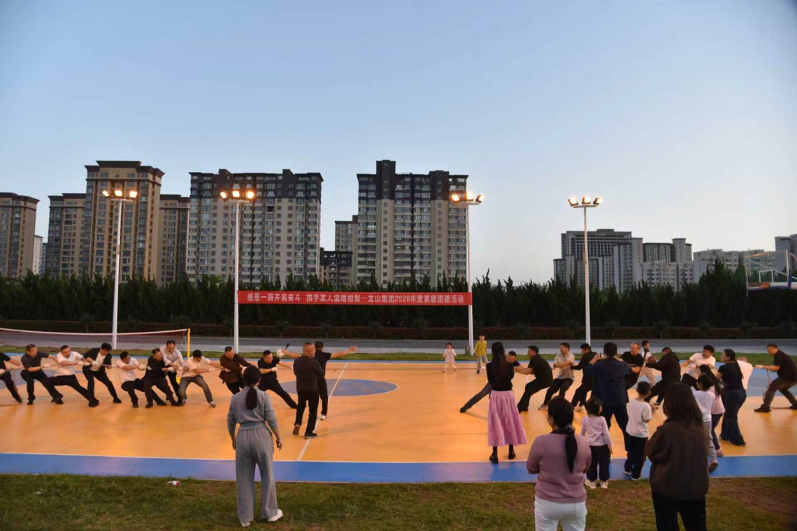 活动现场,气氛热烈。来自集团各部门、子公司的员工携家属踊跃参与,近百名家庭成员齐聚一堂,在轻松温馨的氛围中开启团建之旅。活动伊始,工会工作人员通过趣味破冰游戏,快速拉近员工与家属、同事之间的距离,现场笑声不断、互动频频,充分展现出龙山实业“大家庭”的和谐与温暖。备受期待的拔河比赛正式拉开帷幕。各参赛队伍精神抖擞,队员们紧握长绳、重心下沉,身体后倾、双脚用力蹬地,展现出十足的斗志。随着裁判一声清脆哨响,比赛正式开始,“一二!加油!一二!加油!”的整齐口号声、助威呐喊声此起彼伏,将现场气氛不断推向高潮。绳子中间的红绸带在双方力量的较量下左右摇摆,队员们齐心协力、咬牙坚持,家属们在一旁热情助威,为家人和队友加油鼓劲,场面既紧张激烈,又温馨感人。