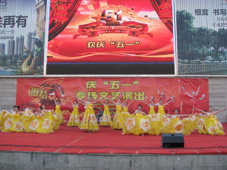 Previous Next 正文 5月1日下午,由市总工会主办,市工人文化宫、郑州颐和投资公司承办的“庆祝五一”大型文艺专场演出在市工人文化宫职工文化活动广场举行。整场节目以歌颂“工人伟大,劳动光荣”为主调,以舞蹈、歌曲、小品等15个精彩纷呈的节目,给现场观众送去了一场多姿多彩的文化盛宴,展示了鹰城劳动者的风采。