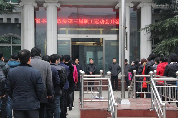 2015年11月27日,宝丰县发改委第三届职工运动会开幕式在机关大院举行,县总工会主席郭鹏飞受邀参加仪式并宣布运动会开幕。