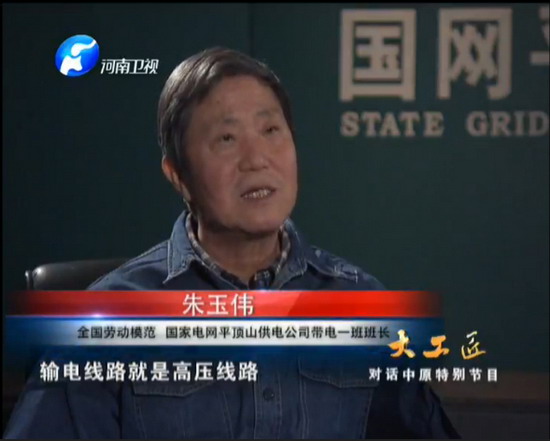 朱玉伟是河南省电力公司系统公认的发明家、技能专家,全国劳动模范,被国务院批准享受政府特殊津贴的先进典型,在河南省总工会的推荐下,河南电视台《对话中原》栏目组对公司员工朱玉伟进行专题访谈。朱玉伟扎根基层36年,用创新屡屡突破技术瓶颈,3项创新成果填补了国内带电作业工具空白,先后研制出20多种获得国家实用新型专利的作业工具,大大提高了带电作业效率,降低了带电作业风险。他带领班组成员开创了全国第一次500千伏输电线路带电作业先河,确立了河南带电作业在全国的领先地位,在平凡的岗位上干出了不平凡的业绩。