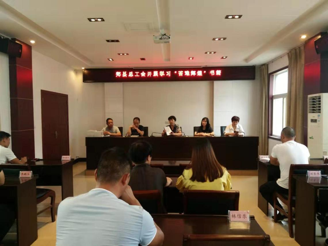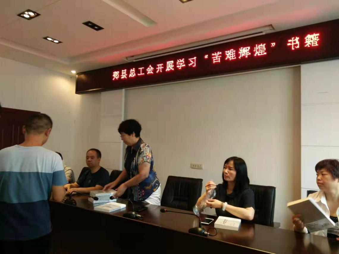 8月12日,为丰富县总工会机关党员文化生活,激励机关党员干部牢记革命先烈的不朽功绩和崇高精神,进一步弘扬党的优良传统,坚定正确的理想信念,县总工会开展学习《苦难辉煌》读书活动。