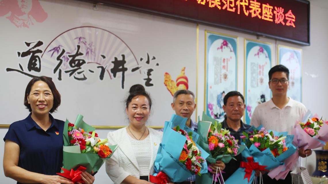 座谈会上舞钢市总工会工作人员首先向劳模代表送上节日里芳香四溢的鲜花,通过劳模代表们向全市辛勤工作在各行各业的劳动模范致以节日崇高的敬意和诚挚的问候。
