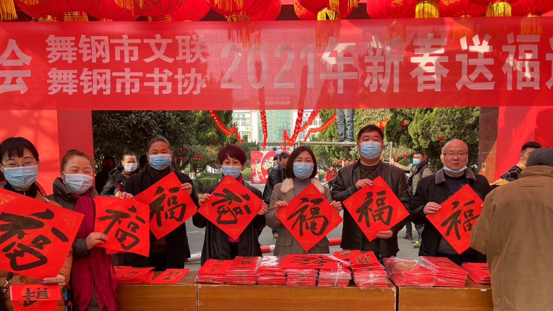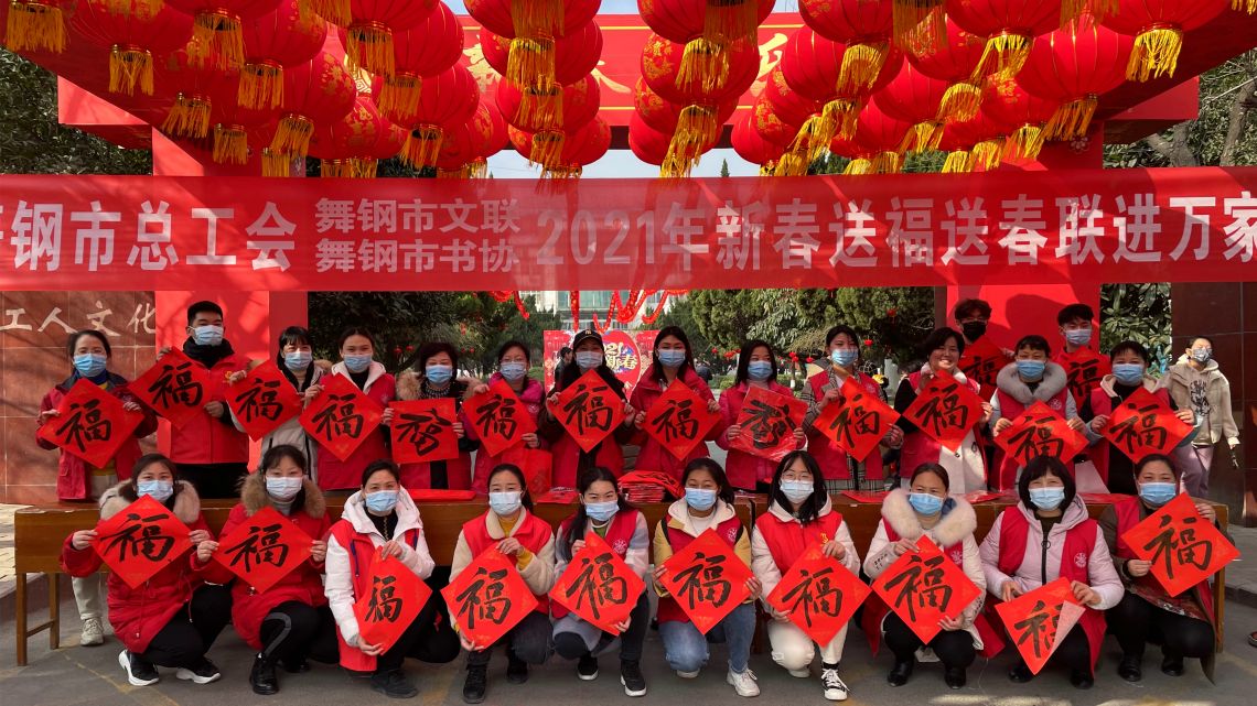 新年将至,2月7日上午,由市总工会、文联、书法家协会联合举办的2021年新春送福送春联进万家活动在市工人文化宫拉开帷幕。活动现场,市总工会党组书记世晓慧带领单位党员干部职工和志愿者队伍为过往的市民送上一幅幅春联、一张张福字、一句句祝福。