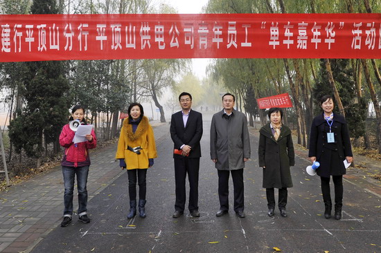 11月23日,平顶山供电公司与建行平顶山分行团委联合开展青年员工“单车嘉年华”活动。公司工会主席刘春阳、副总政工师康晓燕,建设银行副行长赵洋、工会主席胡山鹰及双方单位70余名青年员工参加。