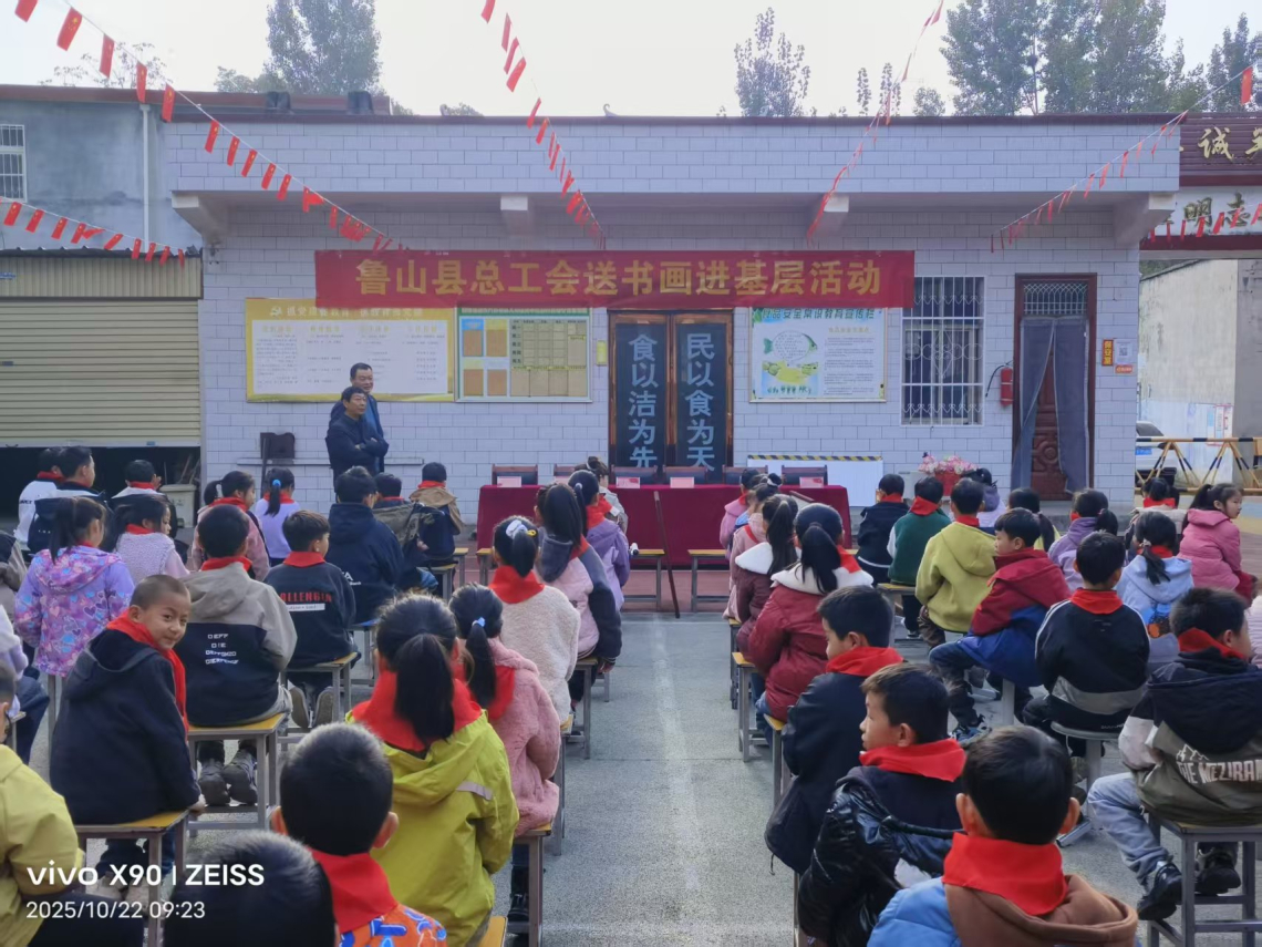 鲁山县总工会送书画活动走进熊背乡第六小学