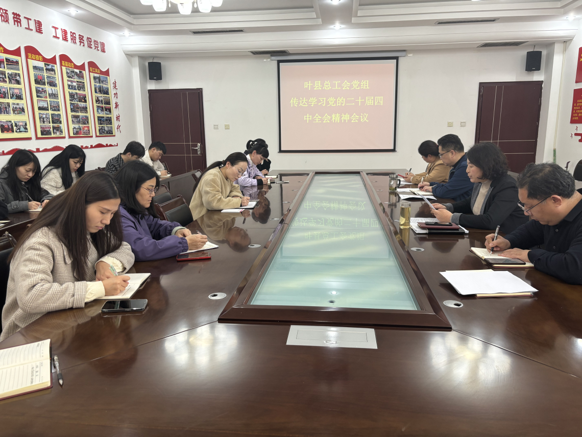 10月28日,叶县总工会召开党组(扩大)会,专题传达学习中国共产党第二十届中央委员会第四次全体会议精神,并就贯彻落实全会精神作出部署。县总工会党组书记刘岳主持会议并讲话。