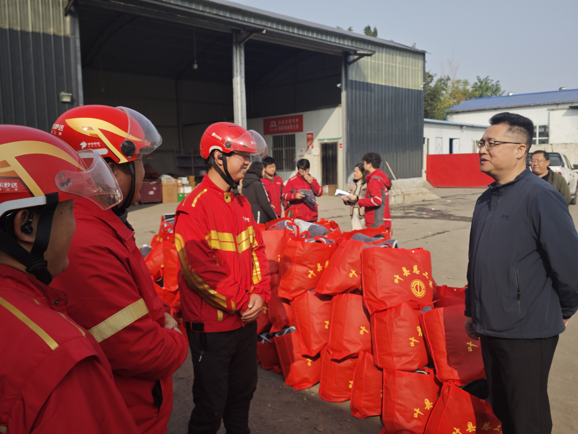 为切实关心关爱新业态劳动者,11月14日,叶县总工会党组书记刘岳带领班子成员,先后到新业态企业京东、美团开展“关爱新业态劳动者”暖冬走访慰问活动,为快递员、外卖员送去挡风被、棉手套等御寒物资,实实在在的为新业态劳动者筑起一道“温暖防线”。