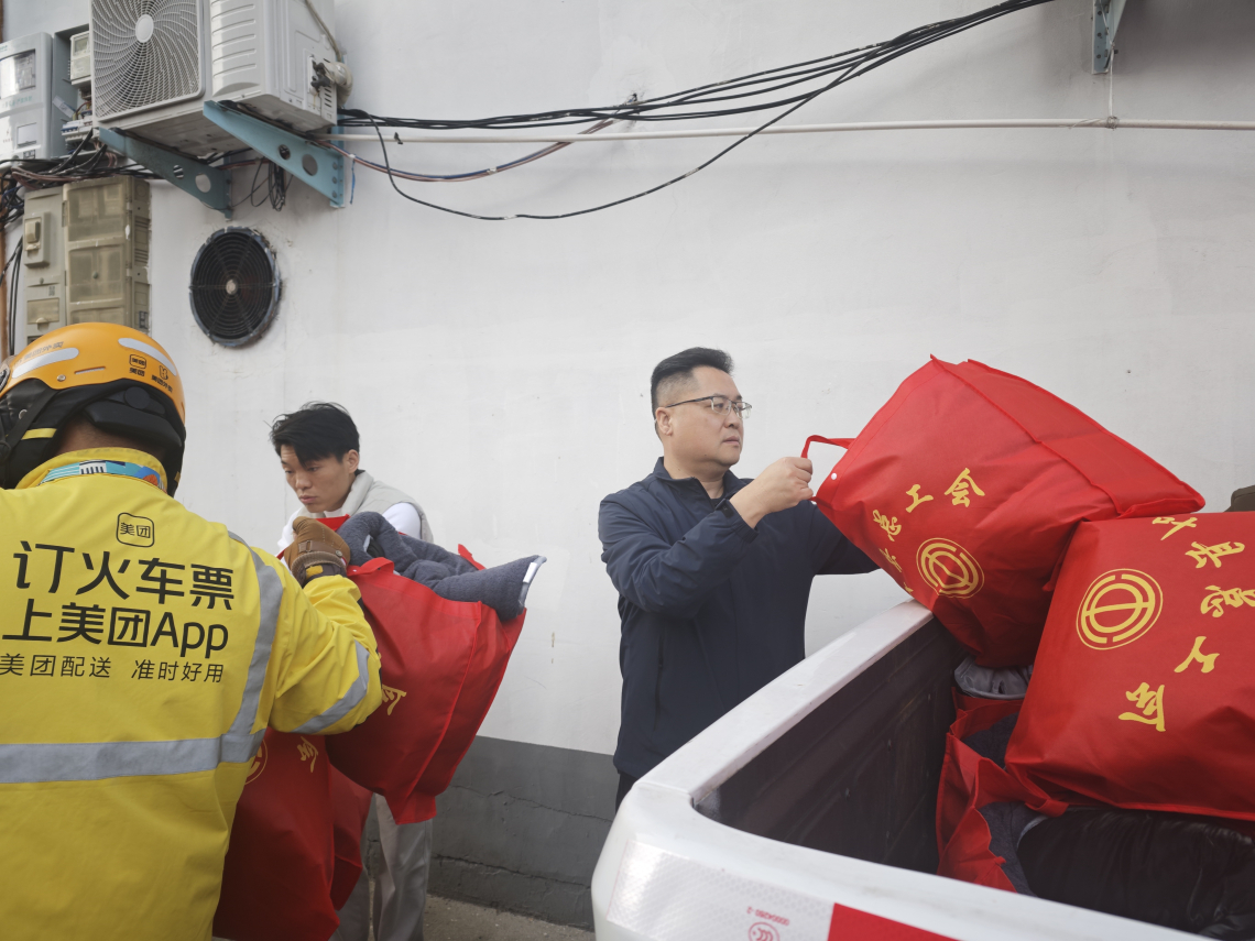 此次慰问活动前期筹备扎实,精准对接劳动者实际需求,共准备挡风被、棉手套等御寒物资200套,当日为美团外卖员、京东快递员发放120套。慰问现场,刘岳亲手将慰问物资交到职工手中,对他们在严寒中坚守岗位、服务市民生活的辛勤付出表示感谢,并反复叮嘱大家注意防寒保暖与交通安全,做到“高高兴兴上班,平平安安回家”。