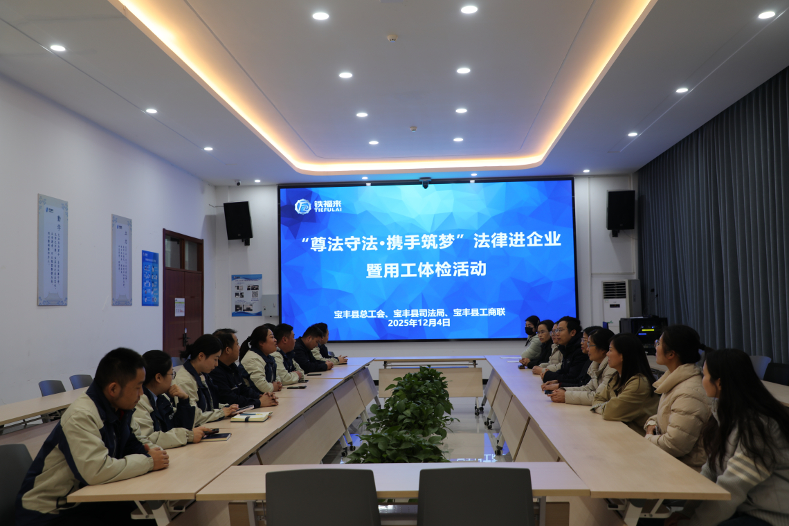 在铁福来装备制造集团有限公司会议室,联合小组携志愿律师与企业代表、职工代表围绕企业合同签订、劳动用工、知识产权保护、合规风险防范等方面进行了深入交流、咨询答复,进一步强化和提升了企业规范用工意识和风险防范能力,为企业的健康稳定发展提供了有力支持。