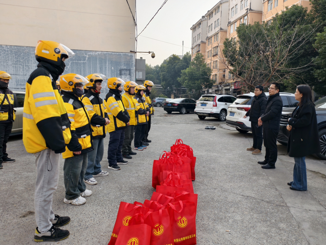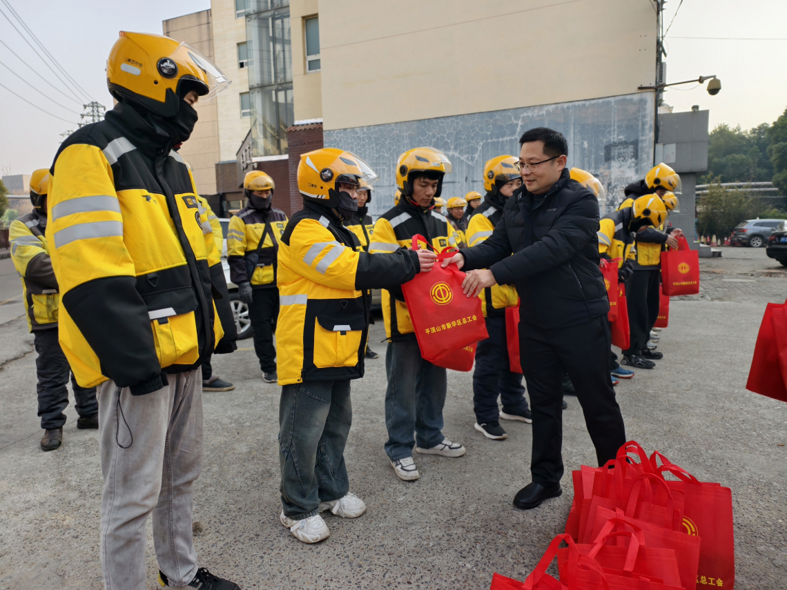 为关心关爱新就业形态劳动者,切实维护冬季新就业形态劳动者的身体健康,确保温暖过冬,把工会组织的温暖及时送到广大新业态职工的心坎上,2025年12月16日下午,区总工会党组书记、常务副主席轩永奎,党组成员、副主席黄武志带队到我区新业态行业开展关爱新业态劳动者“冬日暖新”慰问活动。